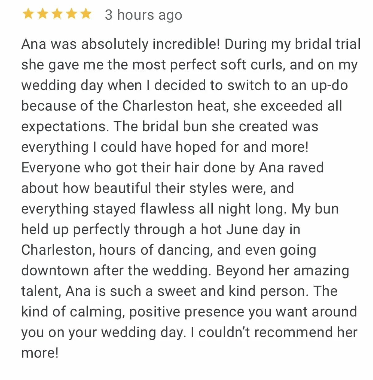 Ana specializes in soft, natural glam, romantic updos, polished waves, extension styling, and the artful incorporation of florals, veils and accessories, creating custom hair designs that flatter from every angle and photograph beautifully. Her work has been featured in hundreds of coastal weddings, branding photoshoots for luxury companies, East West Gem CO, and on Season 3 of Bravo’s Southern Hospitality. She is trusted by VIPs who value timeless beauty with a modern sensibility.